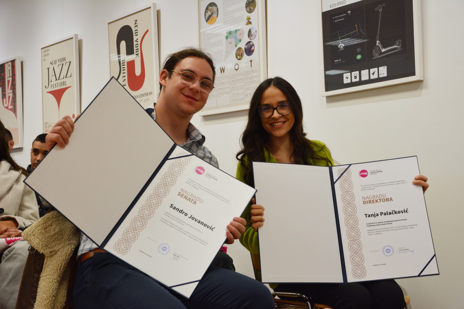 Nagrade Senata uručene su studentima Sandro Jovanović i Ana Vukičević, studij Dizajn te Gloria Hrstić studij Kriminalistike za ostvarene izuzetne rezultate tijekom studija. Nagradu Direktora primila je studentica Tanja Palačković sa studijskog smjera Modni dizajn za afirmaciju i promociju Logosa.